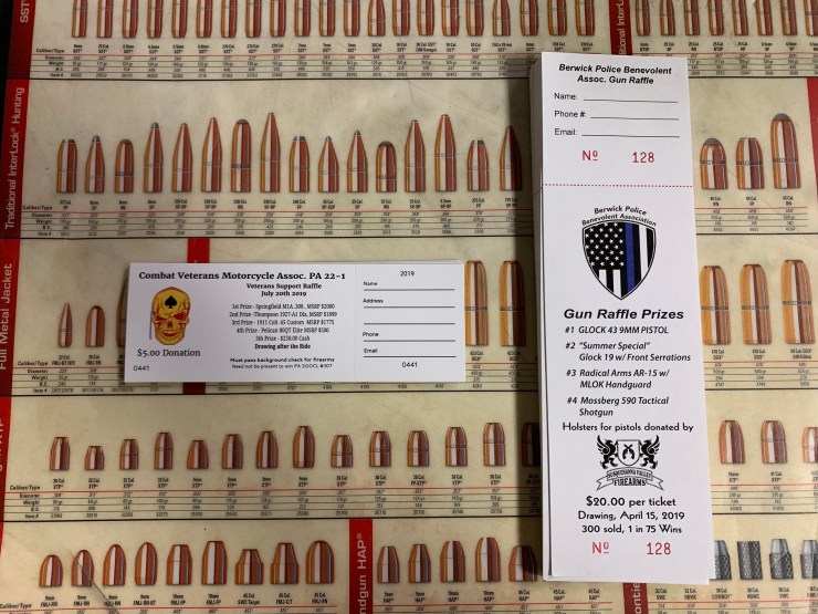 We have tickets for two raffles at the shop.