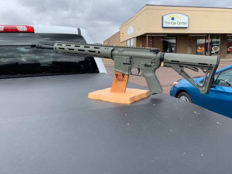 This started life as a plain S&W AR-15. We upgraded the furniture and cerakoted it foliage green. Whether you want us to simply and tastefully upgrade a firearm, or you want us to do a very high end custom build, SVF is your one-stop gun-shop.
