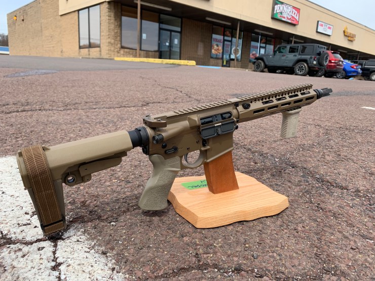 This AR pistol was built for one of our regulars. They wanted a compact setup, cerakoted, long enough to legally use a vert grip (over 26″ overall length), that would be an excellent host for their Dead Air suppressors. We also tuned this gun to run suppressed; it’s this type of work and attention to detail that makes us the best shop in the area. Let SVF be the home of your next custom build!