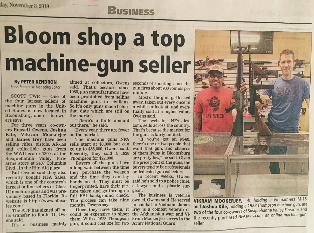 BIG NEWS! SVF now owns NFA Sales-one of the top machine gun dealers in the nation. See the article in today’s paper for the details.