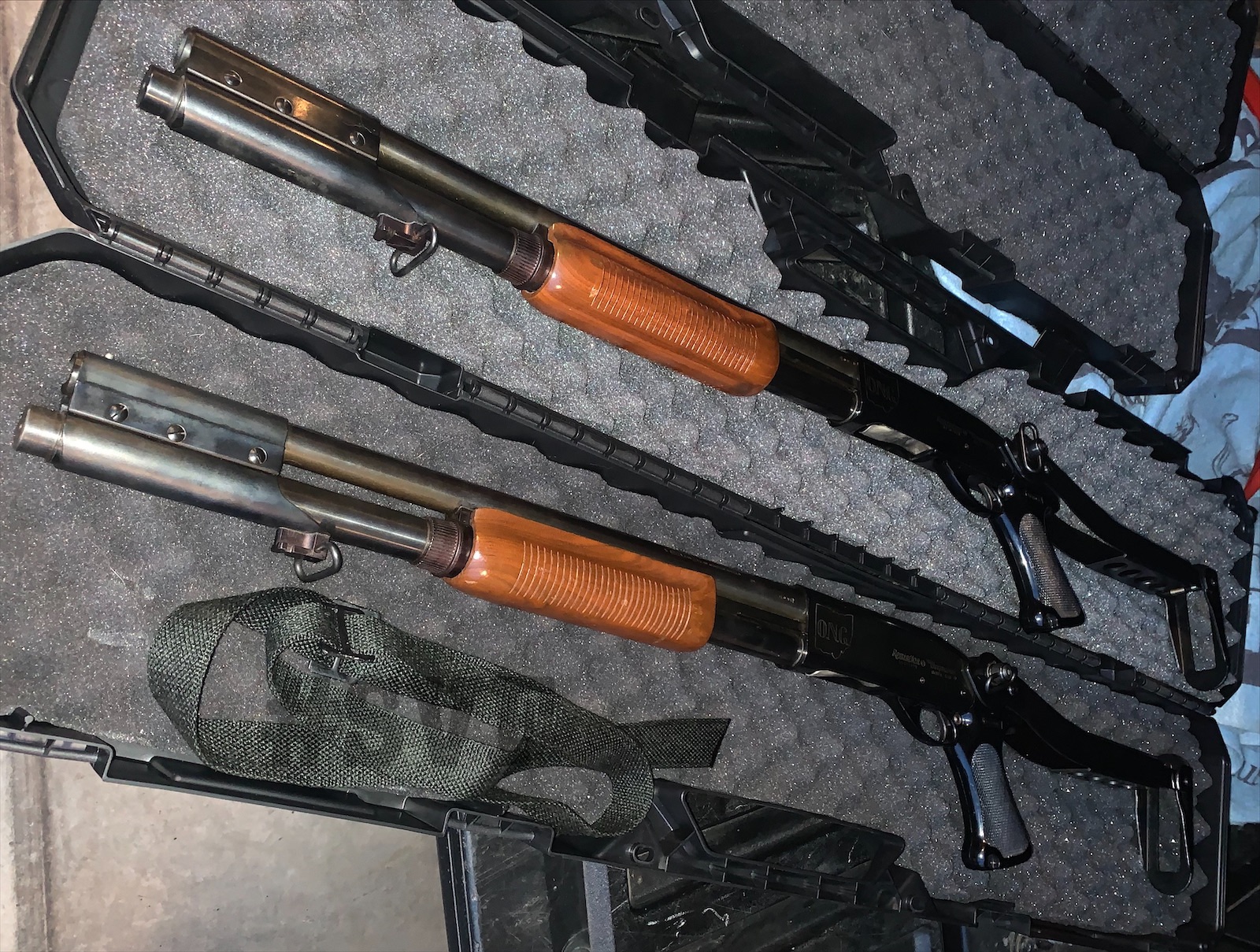 ATTENTION GUN ENTHUSIASTS! These are Remington 870 Ohio National Guard riot shotguns from 1972. Only 400 factory folding models and 800 fixed stock models were made. These guns have some pretty rare parts, like the special Remington bayonet adapter that accepts a standard M7 bayonet, and a Remington “Law Enforcement Only” marked folding stock. These have a colorful history; they were utilized in the 1993 Lucasville Prison riot and were also issued out during Hurricane Katrina when the Ohio National Guard was deployed for relief efforts. Military issued shotguns hardly ever come to the market, making this a special find! We are keeping one, but the 2nd one is for sale.